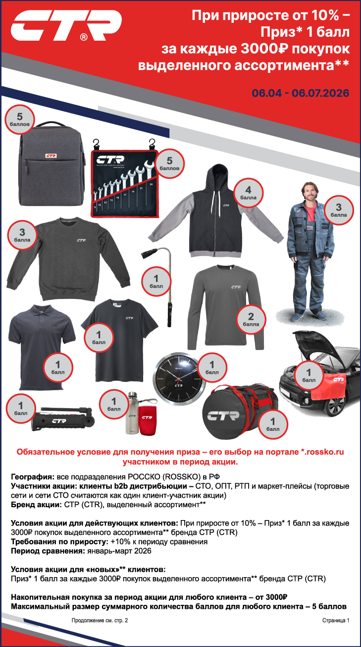 06.04 - 06.07.2026 Акция «При приросте от 10% – Приз* 1 балл за каждые 3000₽ покупок выделенного ассортимента** бренда СТР (CTR)»